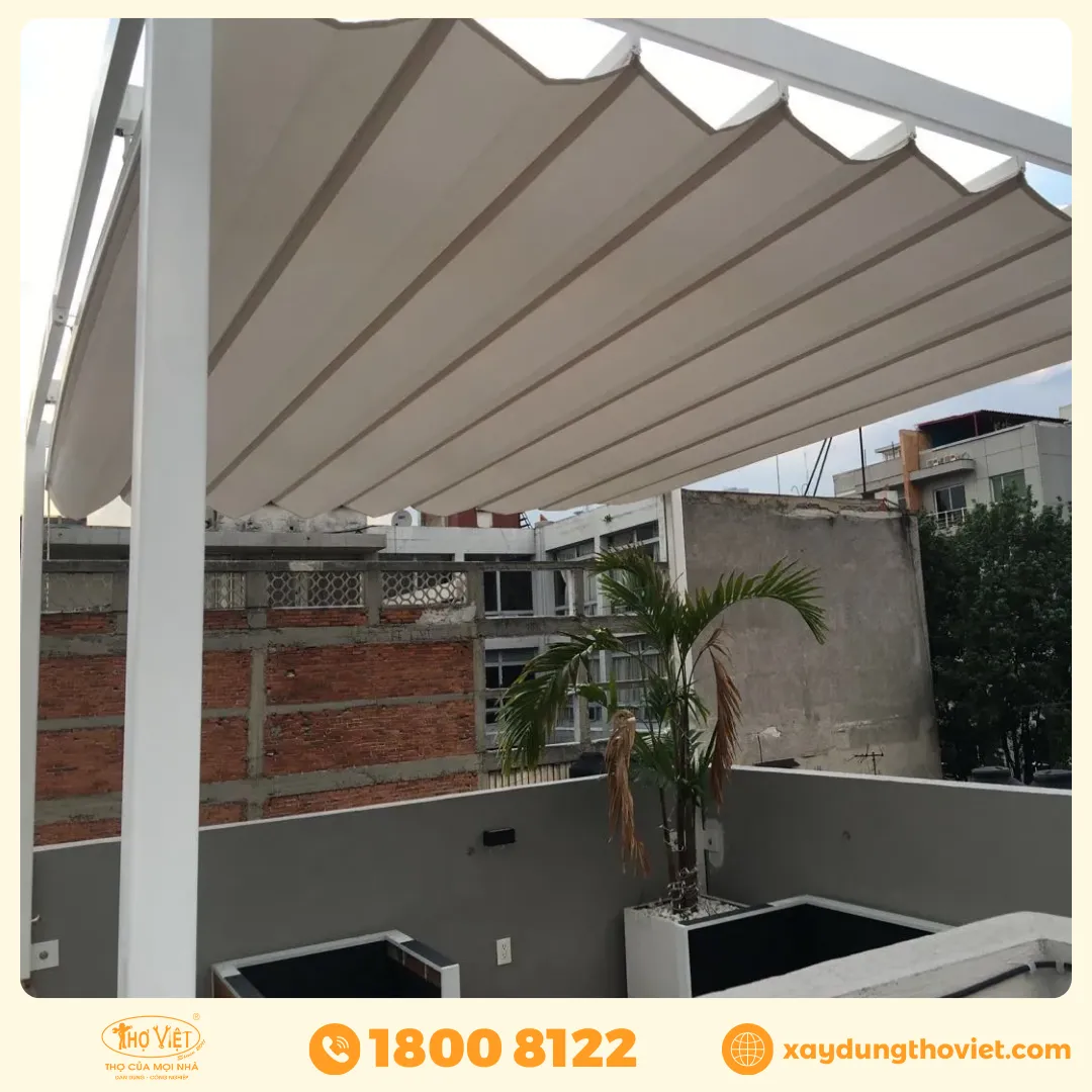 - Che nắng – chắn mưa hiệu quả: Bảo vệ sân thượng khỏi thời tiết thất thường, giảm thiểu ảnh hưởng của ánh nắng và nước mưa.