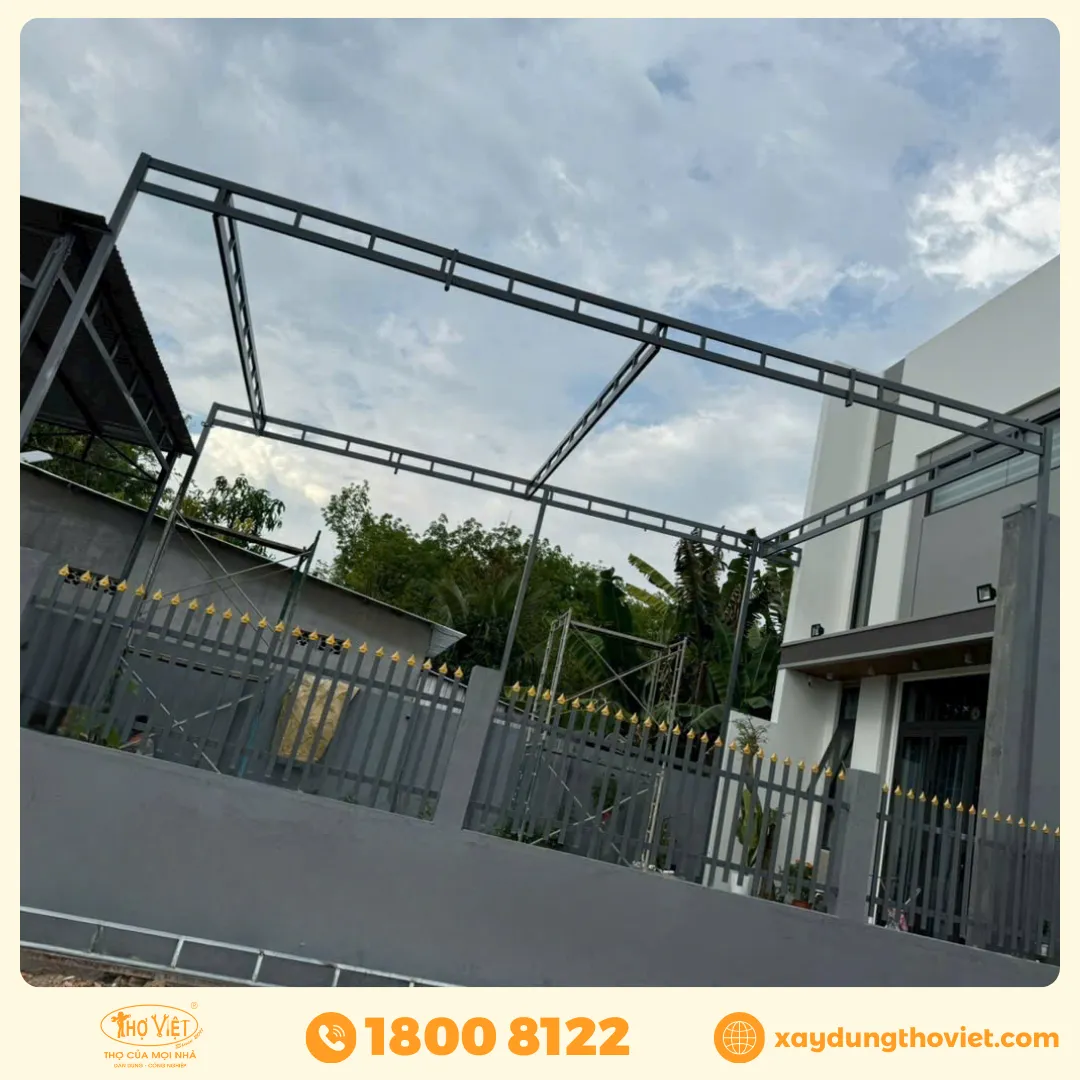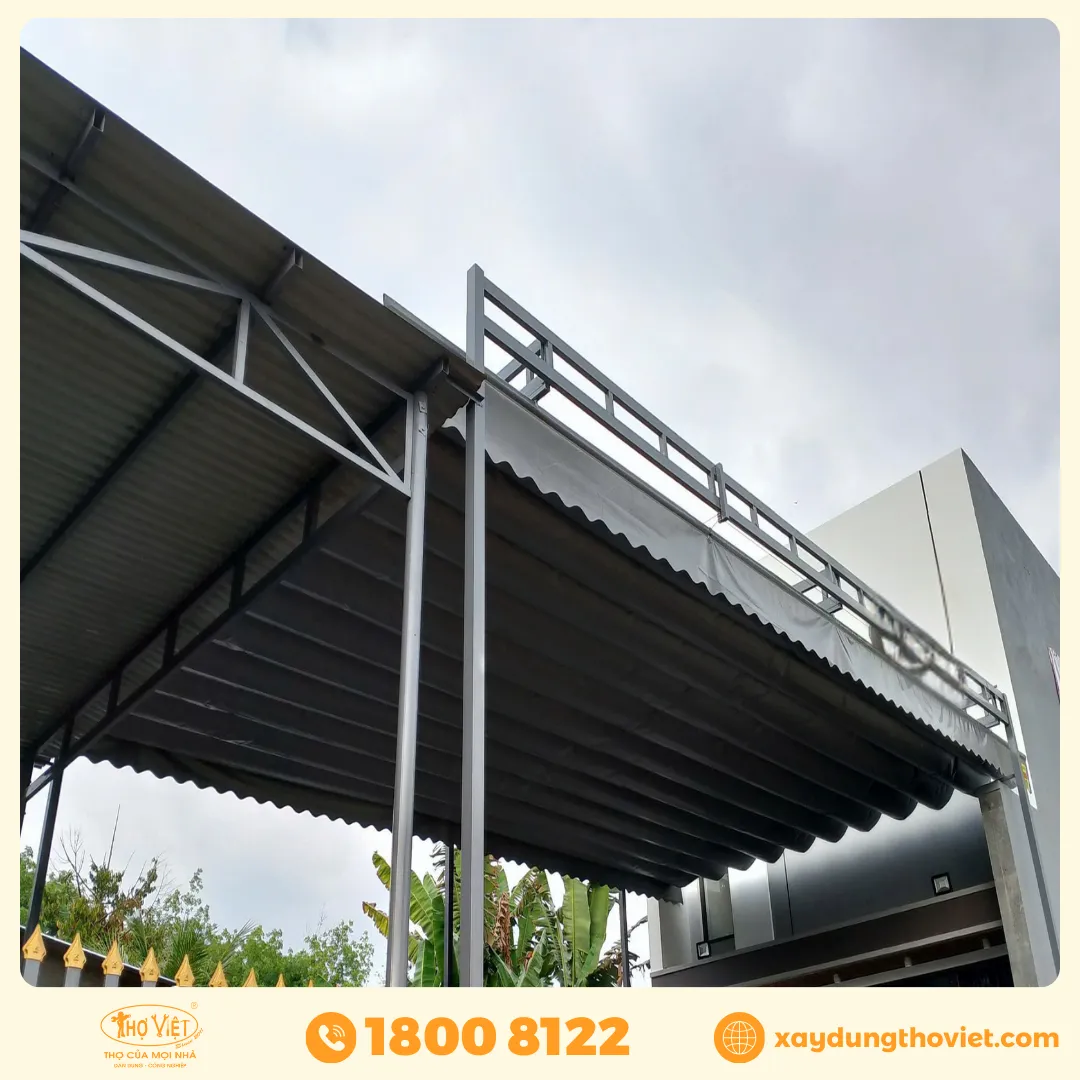 Khung mái che MCX3 được sản xuất từ thép hộp có độ dày cao, phủ sơn tĩnh điện chống gỉ. Lớp sơn này có khả năng chịu nhiệt, chịu ẩm và hạn chế bong tróc sau thời gian dài sử dụng. Kết cấu khung vững chắc, không bị rung lắc hoặc cong vênh ngay cả khi gặp gió mạnh.
