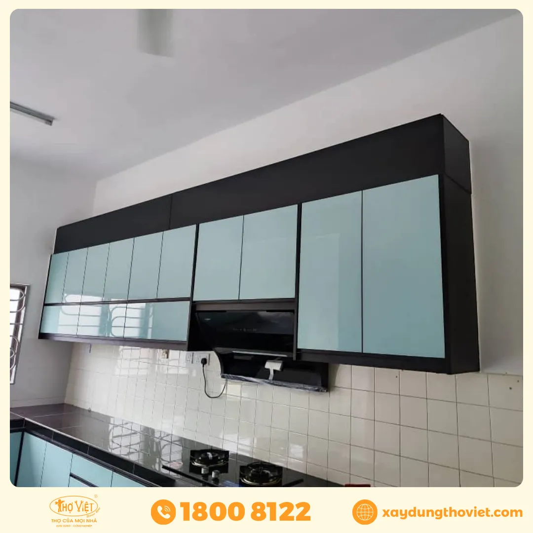 Thiết kế kết hợp giữa nhôm sáng và kính trong mang lại cảm giác sang trọng, hiện đại và dễ phối màu với các loại nội thất khác. Đây là lựa chọn lý tưởng cho người yêu thích phong cách bếp tối giản nhưng vẫn tiện nghi, sạch đẹp.